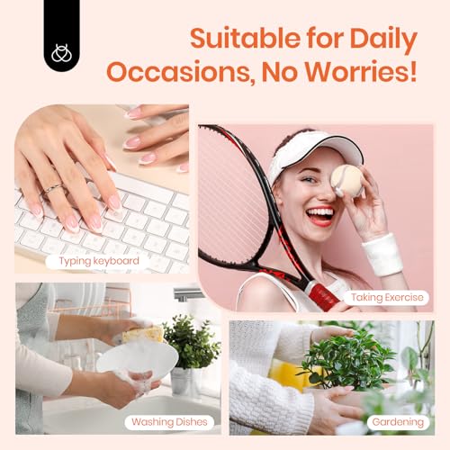 - No Stinging - Comfortable Soft Gel: Beetles pink short squoval press on nails made of soft gel, which is more malleable and more natural, pre-shaped, fits both flat and curved nails. Comfortable! No Stinging! It without pressure on the nail bed feels like real nails. The soft curves and seamless cuticle lines perfectly fit your nail bed.