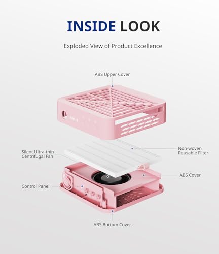 AIRSEE Nail Dust Collector,Compact Vacuum Fan Dust Collector for Salon & Home with Reusable Filter, Powerful Dust Suction Machine Manicure Pedicure Tool for Acrylic Nail Polishing, Pink