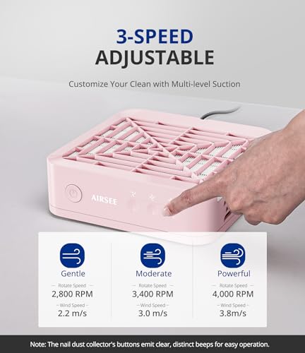 - Low Noise Operation: AIRSEE Nail vacuum cleaner adopts unique upgraded noise reduction technology with low noise operation, providing a more comfortable experience and creating a pleasant atmosphere for you and your clients in your house or studio