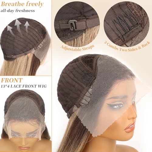 AISI HAIR 13x4 Ombre Blonde Straight Lace Front Wig for Women Synthetic Pre Plucked Blonde Glueless Wig With Baby Hair for Beginner Friendly 28inch