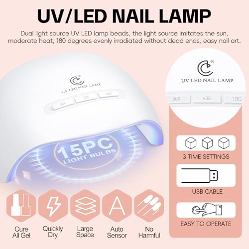 - Fast Drying Nail Lamp: Different from the foldable nail lamp, this nail light is equipped with 15pcs led beads, 180 degree uniform irradiation without dead ends, easy to operate. The nail dryer can dry many types of gel, including gel nail polish, poly extension gel, U V gel, base top coat and etc.The curing time is determined by the thickness of the gel, it is recommended to cure for at least 120 seconds