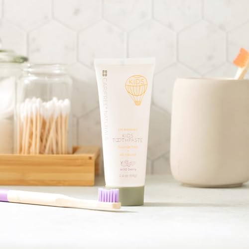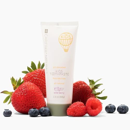 CariFree Naturals Kids Toothpaste | Fluoride-Free, 40% Xylitol, Organic Wild Berry Flavor, pH Elevated, Safe if Swallowed, Sugar-Free, 2.4 oz, Made in The USA