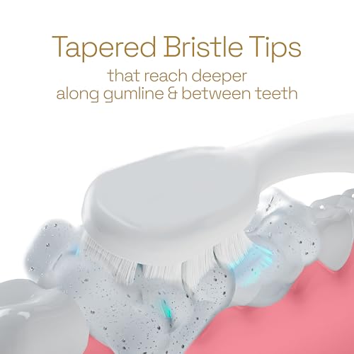 - The battery toothbrush features soft tapered Floss-Tip (1) bristles that reach deeper (2) along the gumline and between teeth to remove bacteria