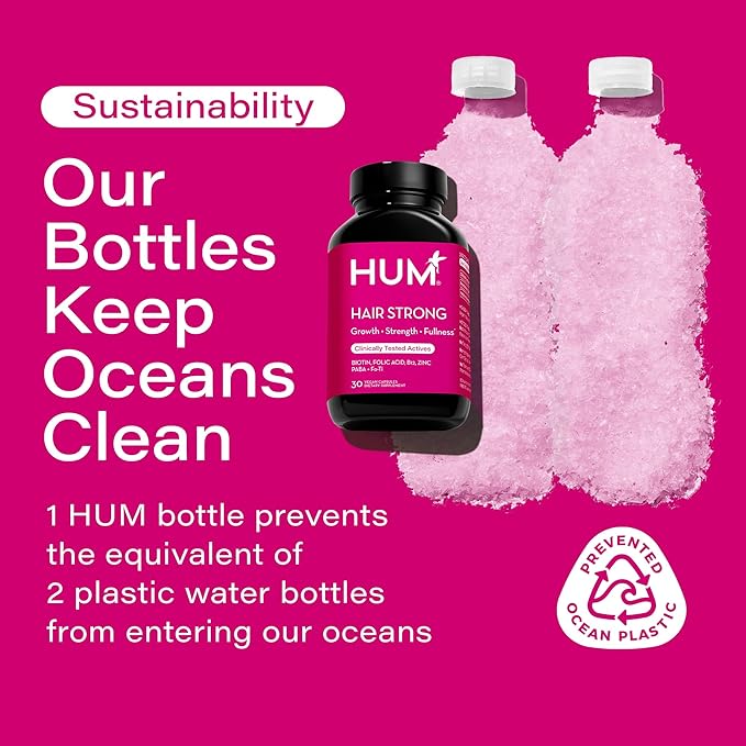 HUM Hair Strong - Hair Growth Vitamins with Biotin, Zinc, and Fo-Ti for Healthy Hair, Skin & Nails - Vegan Hair Supplement for Women | Biotin Supplement, (30 Capsules)