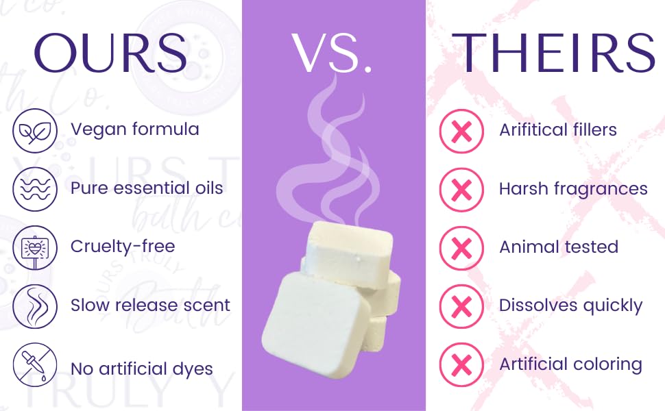 - ESSENTIAL OIL: No artificial fragrances. Our shower tablets are created with only pure, natural essential oils. With every breath during your relaxing shower, you are only inhaling quality, filtered essential oils derived from nature.