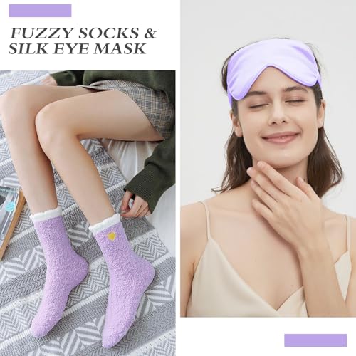 - Practical Self Care Gifts for Women: The clever gift basket theme ideas include a 12oz insulated stainless steel coffee tumbler, a lavender scented candle, a handmade bar soap, a both bomb, a silk eye mask, a cozy pair of socks and a greeting card. The coffee mug helps to keep hot drinks for 3.5 hours and cold drinks for 9 hours. Packed in a premium in a gift box, our purple gift basket is a perfect choice for gift giving