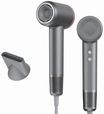 - High-Velocity Airflow for Ultra-Fast Drying - With a 110,000 RPM motor generating a 21m/s intense airflow, the hair dryer quickly dries hair in only 1-5 minutes. The included 360ยฐ magnetic nozzle are easy to attach/detach, making hair styling a breeze.