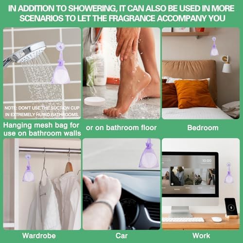 - Gifts for Her Him: Shower steamers 18 pack gifts with 3 mesh bags, 3 suction cups. It can't used not only in the bathroom but also in the car, bedroom, desk etc. Enjoy the natural fragrance of plants and fruit, and feel nature's fragrance at all times. After a busy day, enjoy natural charming aroma of shower steamers, relieve fatigue, stress, relax the body, mind, help sleep relax better. It's a Mothers Day gifts,gifts for mom, self care relaxation gifts for mom, birthday gifts for mom, etc