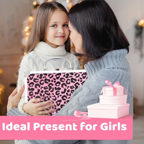 Anpro All-In-One Leopord Double Folding Makeup Carry Case with Pro Teen Makeup Set, Full Starter Kit with Makeup Brushes, Lipsticks, Eyeshadow Palette, Blushes, Glitter Gel, Ideal Present for Girls