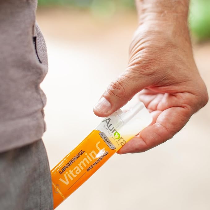 Aurora Nutrascience Mega-Pack Liposomal Vitamin C, Immune Support, 3,000 mg Per Serving, Vegan, Gluten Free, Non-GMO, 10 Single Serve Packets, Orange