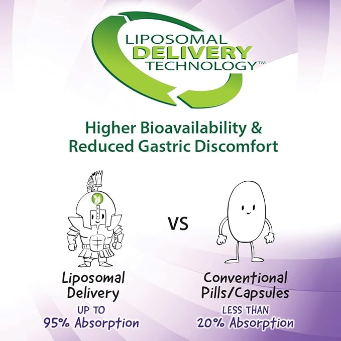 - ADVANCED LIPOSOMAL DELIVERY TECHNOLOGY: Our cutting-edge liposomal encapsulation enhances nutrient stability and boosts glutathione absorption by up to 90%, far surpassing traditional supplements. The liposome spheres protect glutathione from stomach acid, allowing more of this essential antioxidant to reach your bloodstream for maximum cellular support and detoxification.
