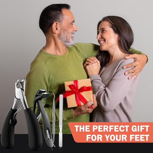 BEZOX Toenail Clipper Kit 4PCS Nail Care Set for Ingrown Toenails – Curved Head Toe Nail Clippers for Seniors for Thick Nails, Thick Fingernail Clippers, Long Nail File & Dual-Ended Lifter - Black