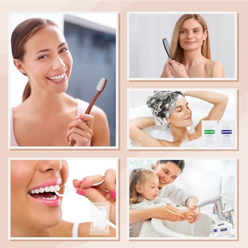 - Comprehensive Hygiene Kits: 8-IN-1 travel toiletry kit is available in 20 sets.Each pack include 1 soap(14g/0.5oz), 1 toothbrushes, 1 toothpastes(10g/0.35oz), 1 combs, 1 body wash, 1 shampoo, 1 care package(1 floss picks,4 cotton swabs, 2 cotton pads),1 reusable zipper bag,. Each kit is packaged in a reusable zipper bag