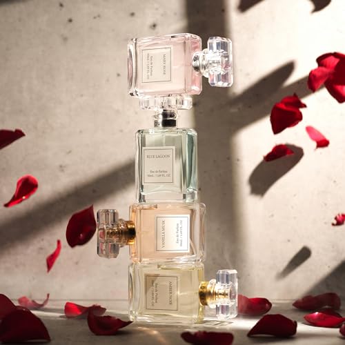 Christmas Gifts for Women, Perfume for Women, Women's Perfume Gift Set - 4pc Sampler With Vanilla Musk, Amber Noir, Blue Lagoon & Mary Rose Fragrances - Large Bottle of Floral Parfum Made in France