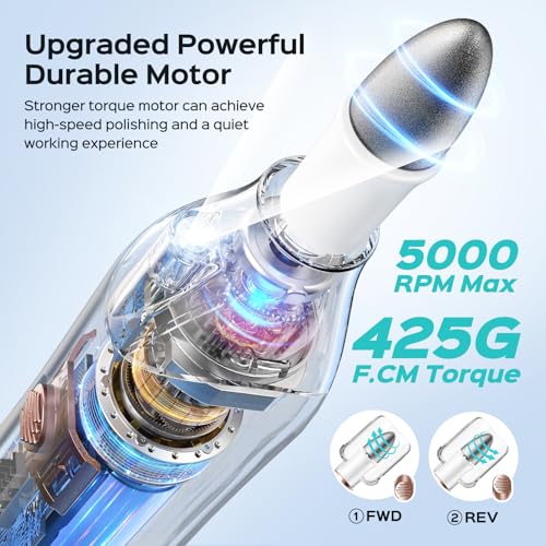 - 【Powerful Motor, Easy Cuticle Trimming】This nail grinder set with a quieter and more powerful motor, low vibration and quick heat dissipation. The upgraded motor torque can reach 425gf.cm, making it easier to trim and polish thick nails, dead skin, calluses and corns on hand and feet. You don't have to worry about the electric nail drill stopping when pressure is applied during grinding.