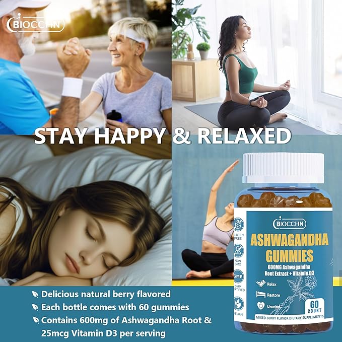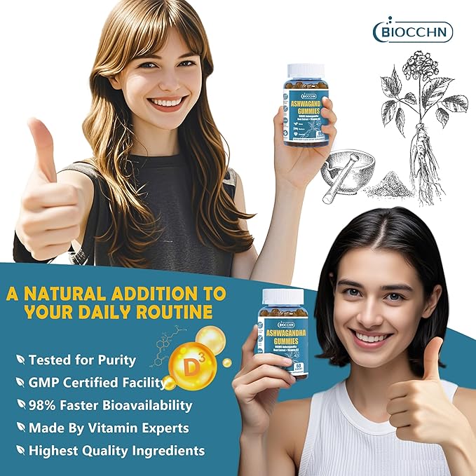 - BIOCCHN's Ashwagandha gummies Insights: BIOCCHN technical team, after meticulous research, adds Vitamin D3 1000iu. Ashwagandha supplement features a sugar-free formula. The flavor is refreshing and has a hint of natural sweetness. Great alternative to capsules and liquid drops!