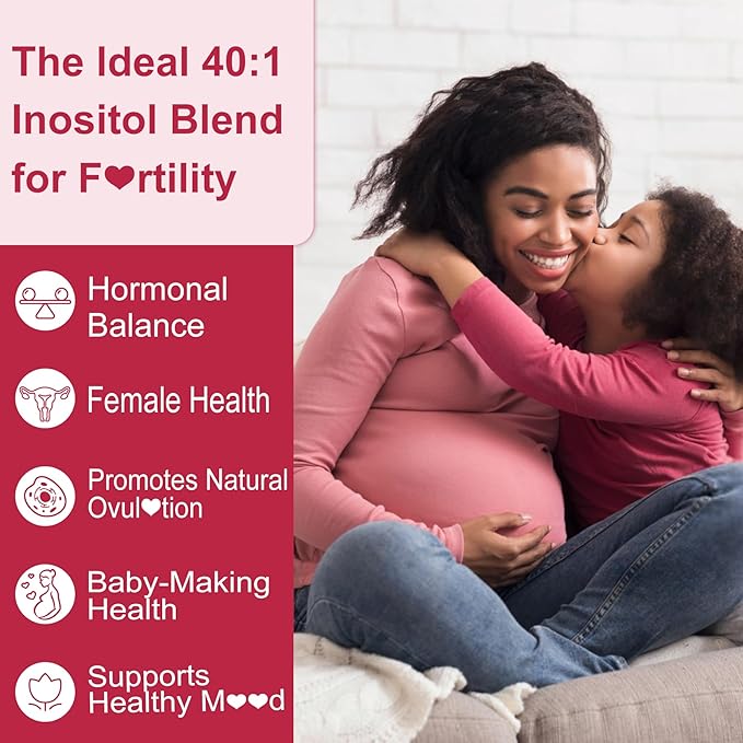 - [Scientifically Balanced 40:1 Myo-Inositol & D-Chiro Inositol Ratio] Weāve carefully crafted this formula with a scientifically proven 40:1 ratio (Myo-Inositol 2000mg to D-Chiro Inositol 50mg) to support hormonal harmony, menstruā¤l cycle regularity, and metabā¤lic health. This perfect balance is designed to optimize womenās health and well-being, helping you feel your best every day.