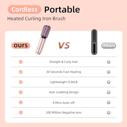 - 【Handbag Emergency? 5-Min Hair Rescue】 Caught in rain or facing frizz before a meeting? A cordless hair brush heats in 60 seconds to smooth hair and restore style in under 5 minutes. Engineered as a secret weapon for real-life hair emergencies, it provides ultimate peace of mind when kept in a handbag.