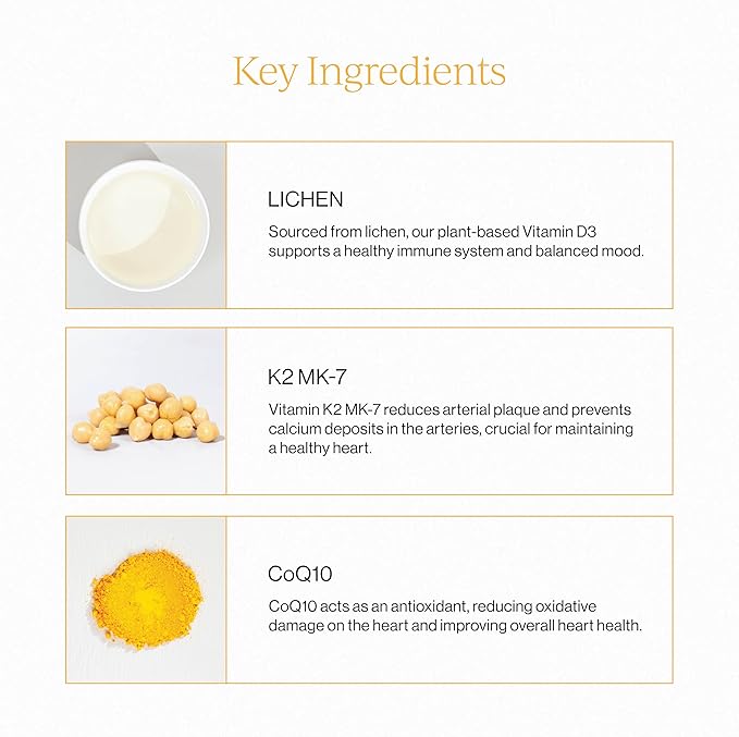 - HEART HEALTH: Our liposomal supplement can support heart health as well. D3 & K2 work to support your cardiovascular system, while CoQ10 helps control harmful effects of free radicals and oxidative stress.