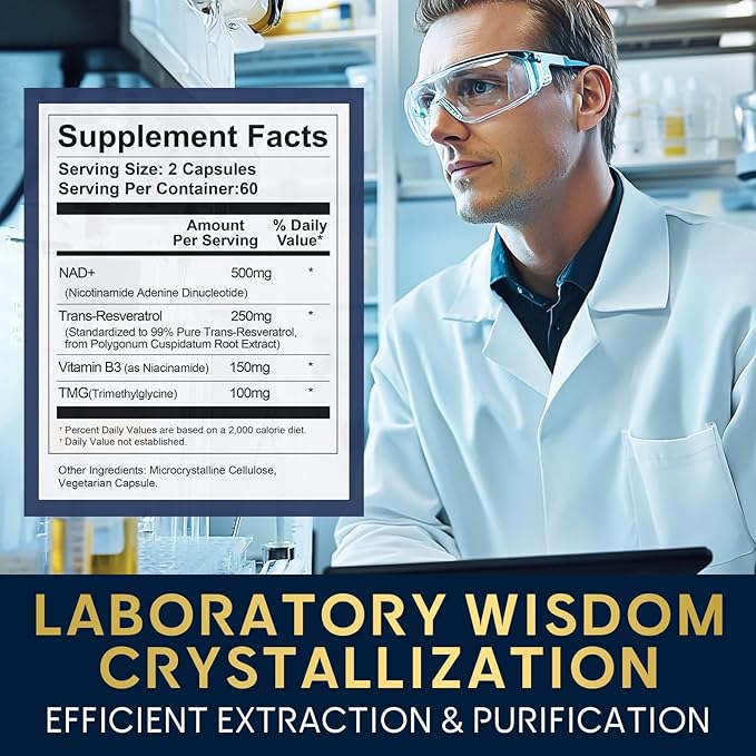 - Enhanced Cellular Energy: A high concentration of 1500 mg of NAD+ provides a quick boost of cellular energy, improves metabolic efficiency, and eliminates fatigue, leaving you energized throughout the day