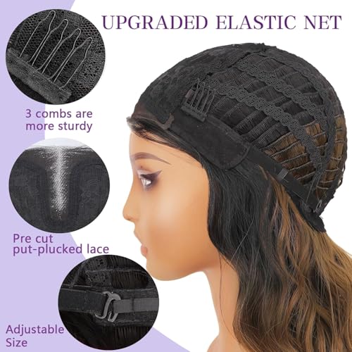 AISI HAIR 14 Inch Ombre Blonde Wigs for Women - Shoulder Length Wave Wig with Pre-Cut Lace Hairline, Middle Part Natural Wavy Bob Synthetic Heat Resistant Fiber for Daily and Party