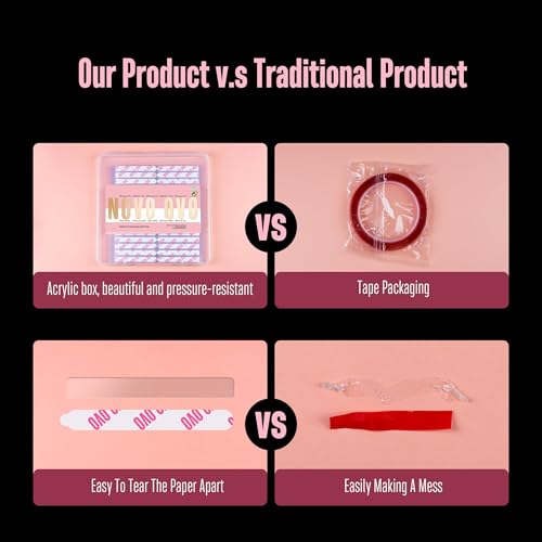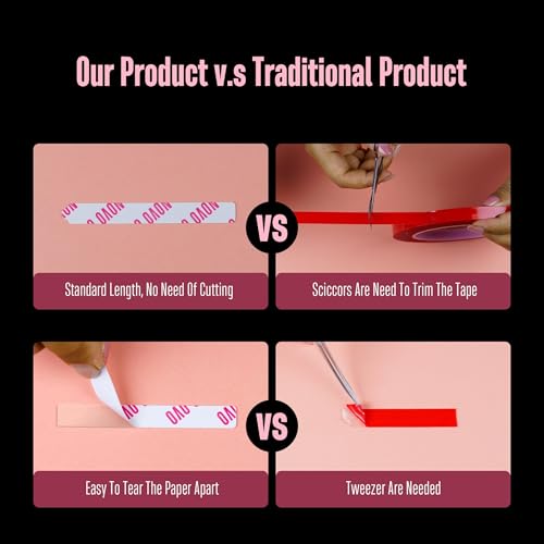 - SPECIAL AUXILIARY HANDLE FOR EASY APPLY AND REMOVE:The suface of Our nail art display strip tape is made of paper instead of plastic flim, which is easier to take off. Also, the specially designed auxiliary handle can help us to tear off the surface easily. You can even take it off with your hands, instead of using the tools for the traditional plastic patches, saving such time and effort. Also, this double sided mounting tape can be removed when you do not want it and it leaves no trace.