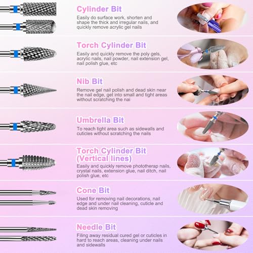 - 【Tungsten Carbide Nail Drill Bits】: This drill bits nail tech is made of high-quality tungsten carbide material, which has extremely high hardness and wear resistance and good corrosion resistance. It is durable, not easy to dull, and easy to use for a long time. Tungsten carbide material also has excellent heat dissipation performance and is suitable for artificial nails and natural nails
