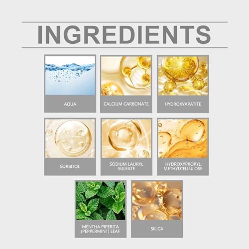 - Supporting Enamel Restoration: Hydroxyapatite, a mineral naturally found in teeth and bones, aids in surface remineralization to help maintain enamel integrity and address minor imperfections caused by daily use or dietary factors.