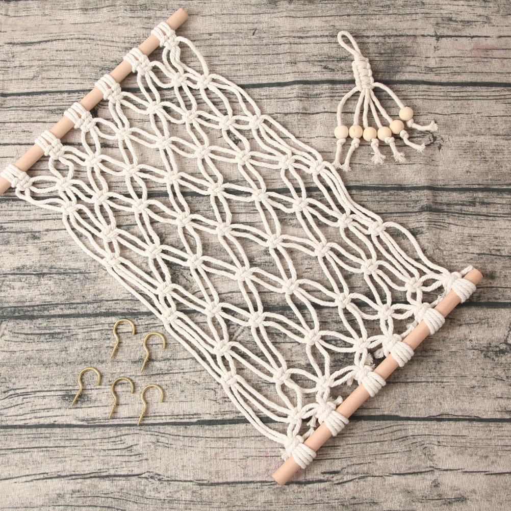 BALAHAPY 1 Set Vegetable Hammock Cotton Rope Wood Metal Indoor Outdoor Home Decor Style