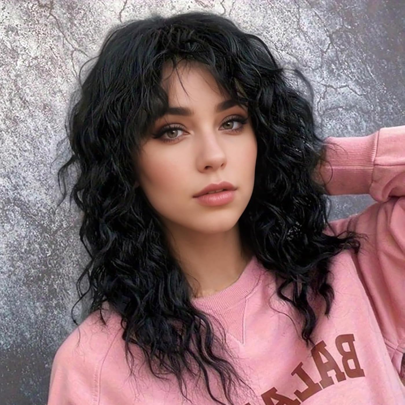 Name:Long Wavy Disco Black Wig with Curly Bangs for Women Girls