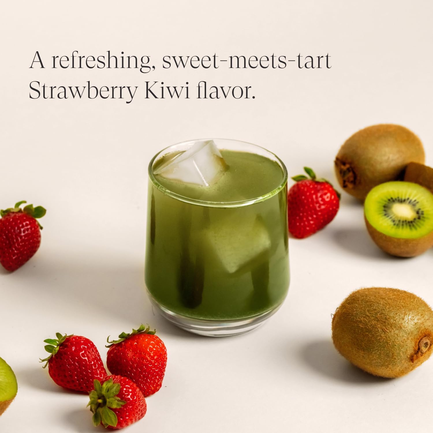 Beam Greens Powder, Superfood Supplement for Gut Health, Vegan Organic Blend with Ashwagandha, Vitamin C, B12, B6, D, Non-GMO Daily Detox & Immune Support, Strawberry Kiwi Flavor - 30 Servings