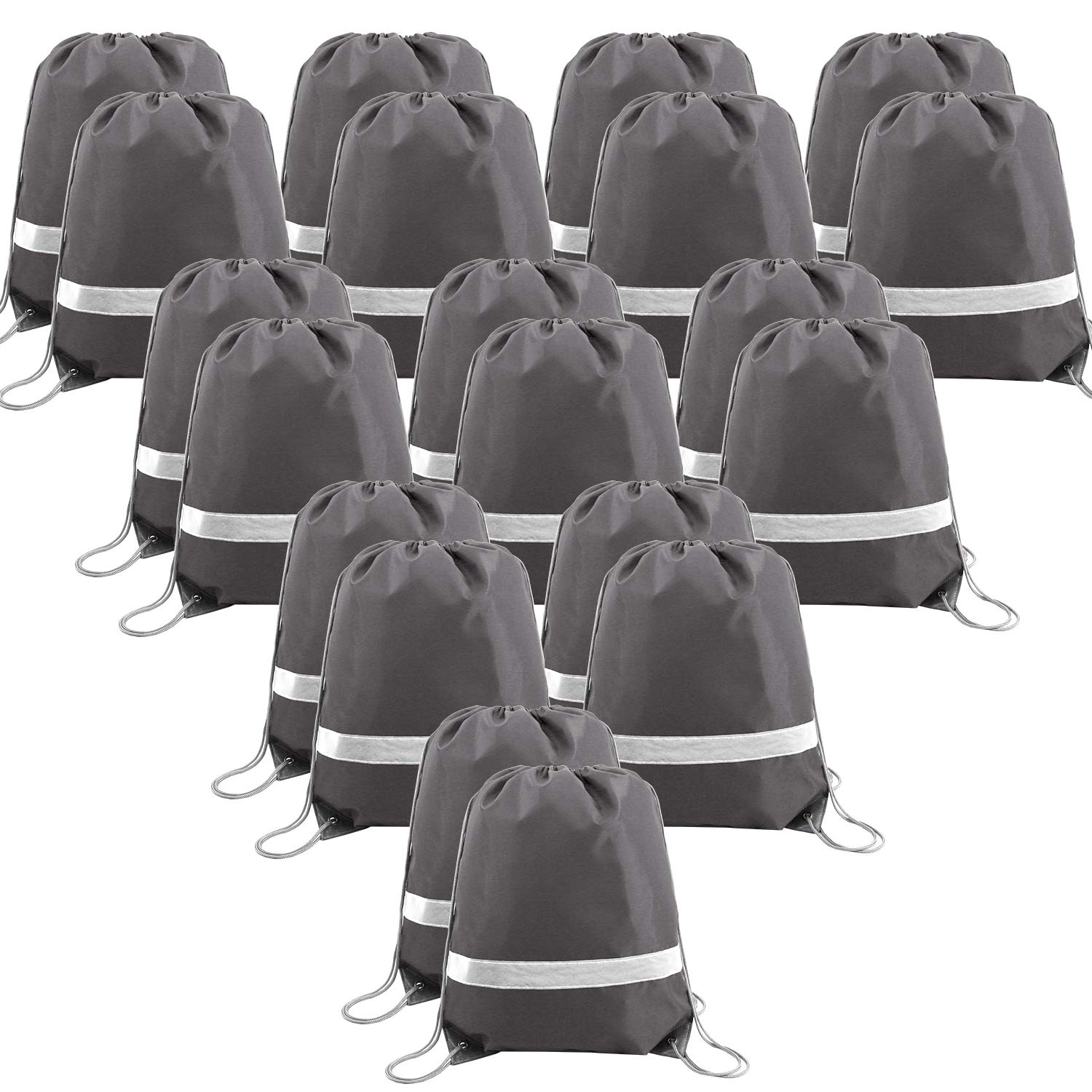 BeeGreen 20 Pieces Dark Grey Drawstring Backpacks Bags Bulk, String Bags Reflective Cinch Sack, DIY Blank Drawstring Bags for Women and Men