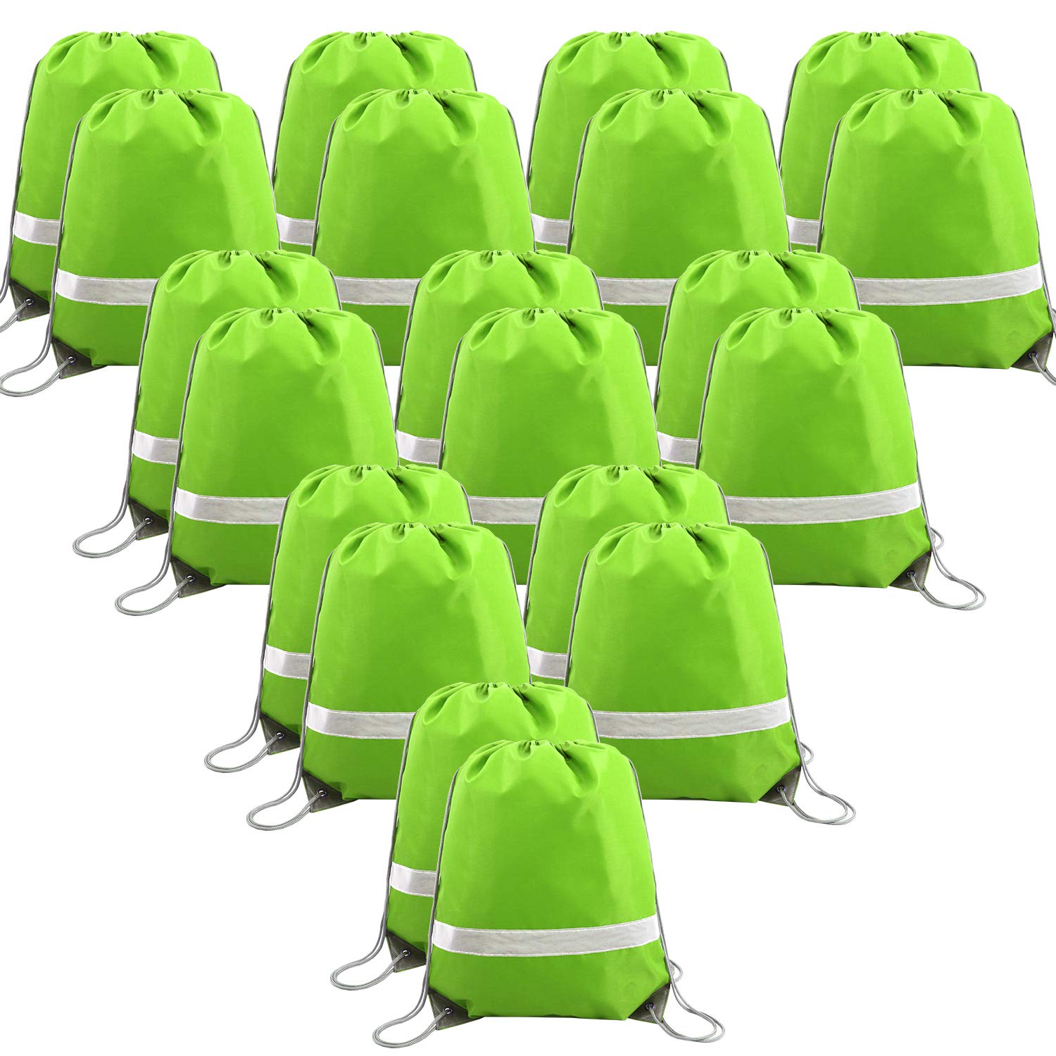 BeeGreen 20 Pieces Green Drawstring Backpacks Bags Bulk, String Bags Reflective Cinch Sack, DIY Blank Drawstring Bags for Women and Men
