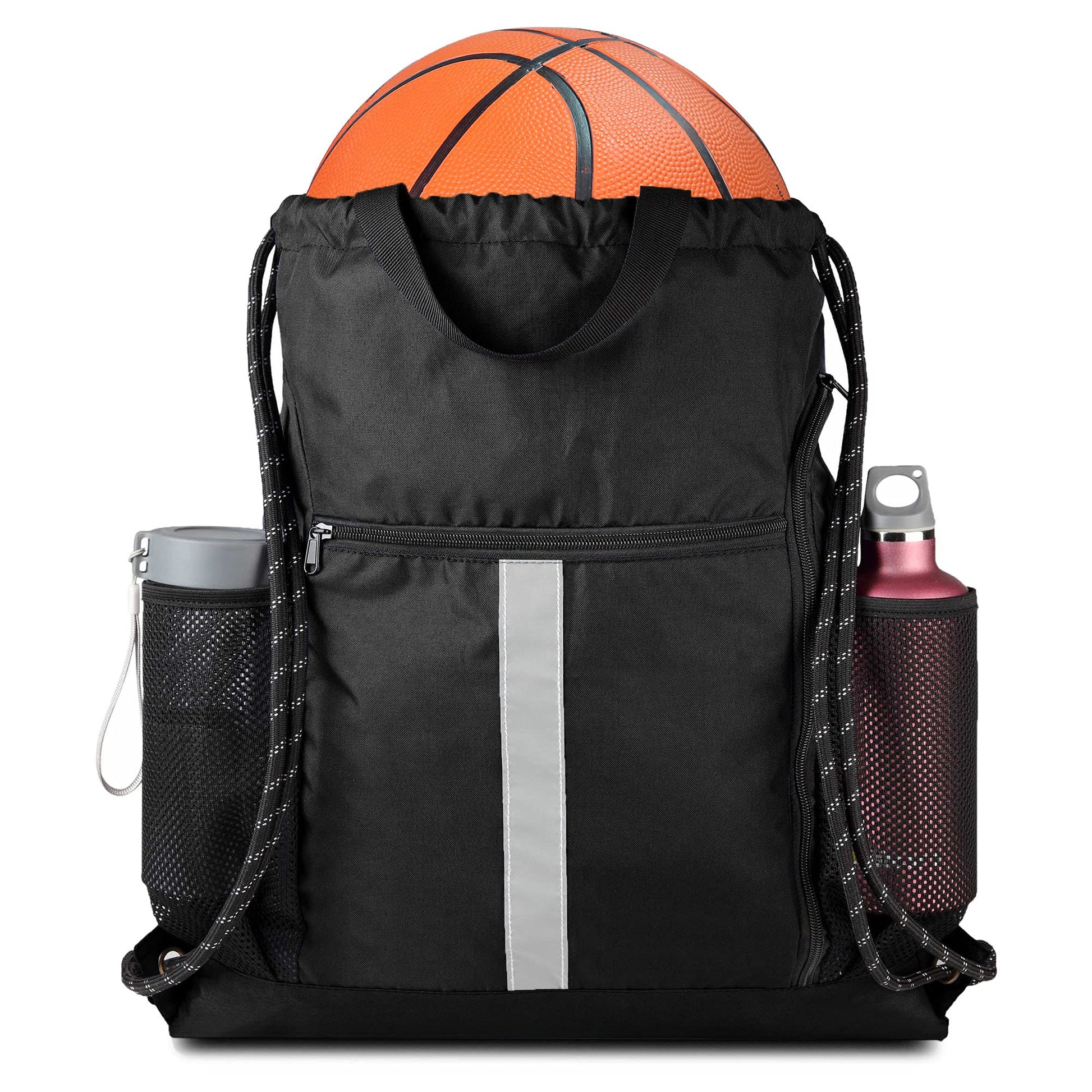- LARGE SPACE: The main space of drawstring backpack for men measures 16' x 19.5' which is big enough to hold a basketball, gym clothing, swim gear, sport towel and daily supplies. Perfect for gym, sports, trip, travel, camping, hiking, walking, running and more! It's also a great sports gift for men, women. Men and women can use it as a gym backpack.