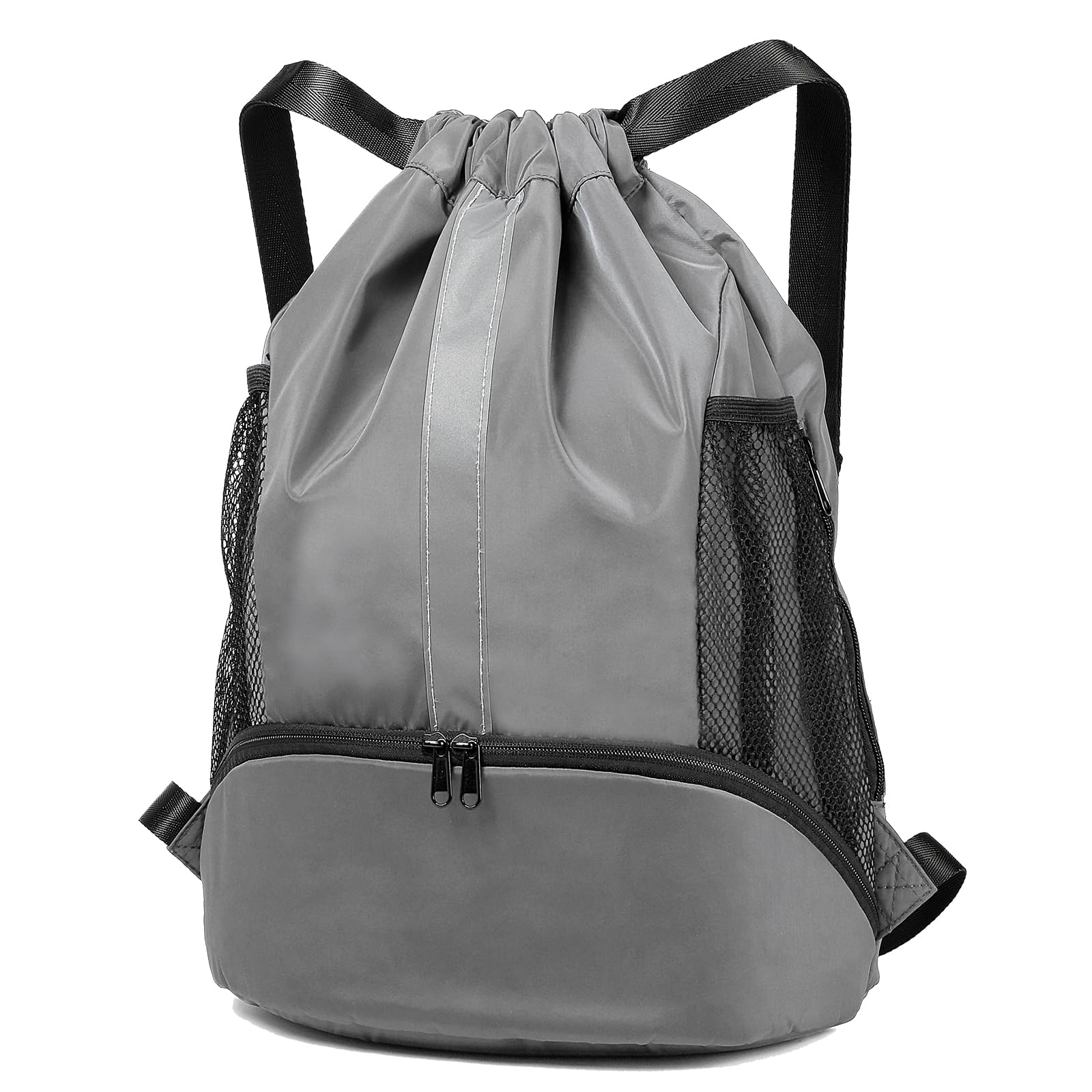 BeeGreen Grey-String-Backpack-Gym-Drawstring-Bag, Large Workout Bag With Wet Proof Pocket & Shoe Compartment For Traveling Yoga Beach Swim Outdoor Athletic