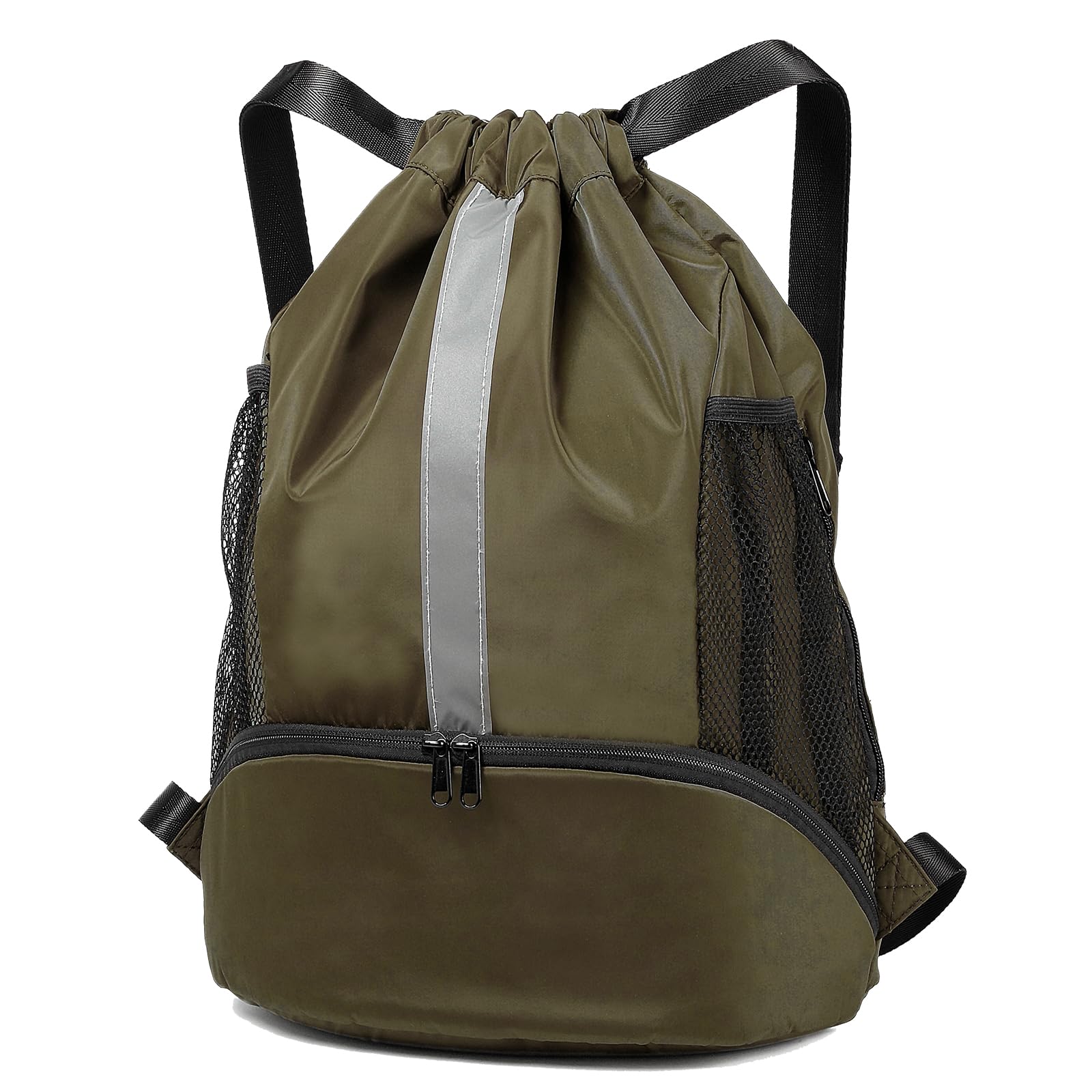 - SEPARATE WET POCKET & SHOE COMPARTMENTS: This drawstring bag has a wet pocket on backside for storing damp items like toiletries and wet towels, keeping other items dry and organized. And there is an enlarged shoe pocket at the bottom, which is perfect for storing sneakers or high-top basketball shoes.