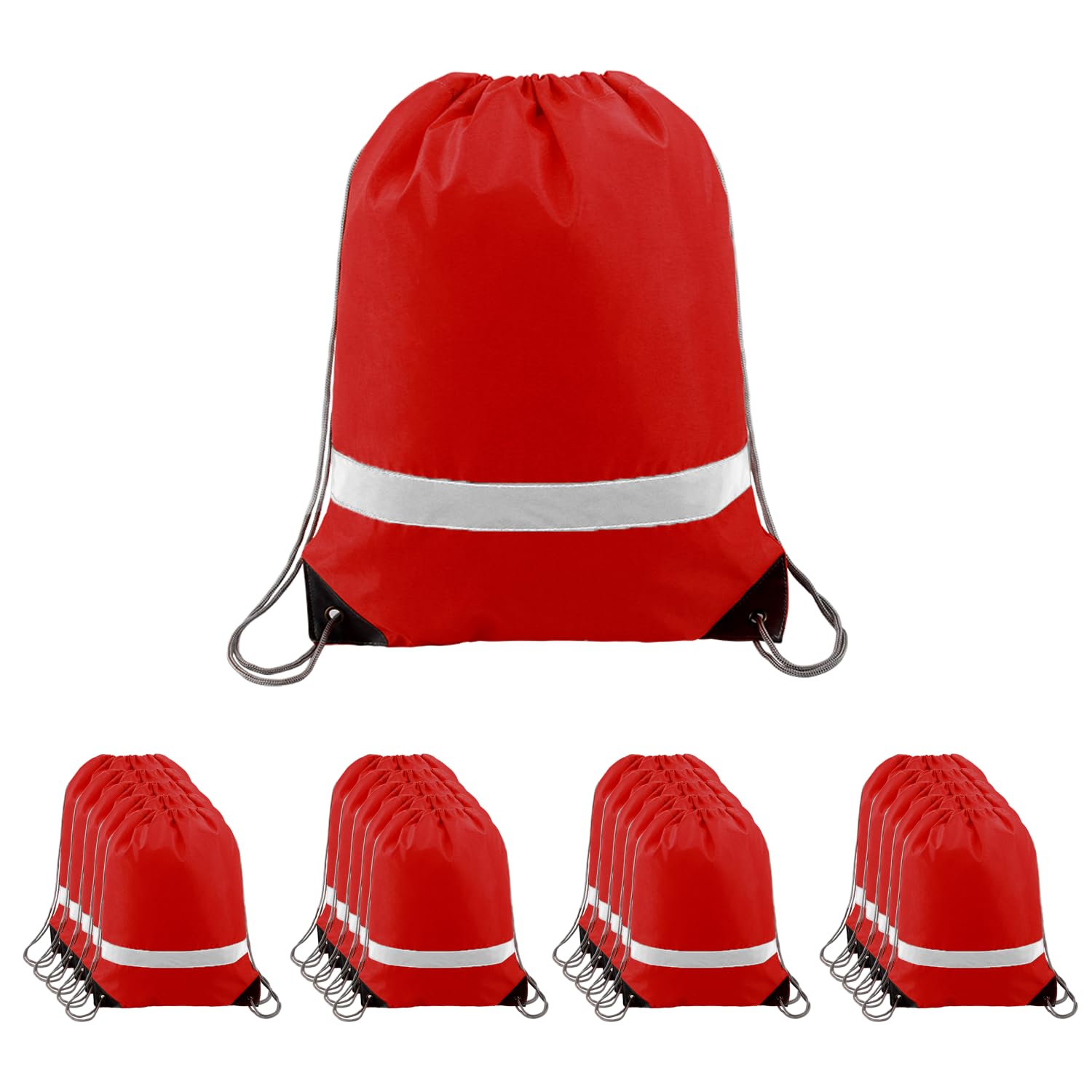 BeeGreen Reflective Drawstring Bags 20 Packs Red Large Drawstring Bags Backpack for Gym Sports Trip with Reflective Strip Cinch Sack DIY for Women Men Cinch Bags For Team…