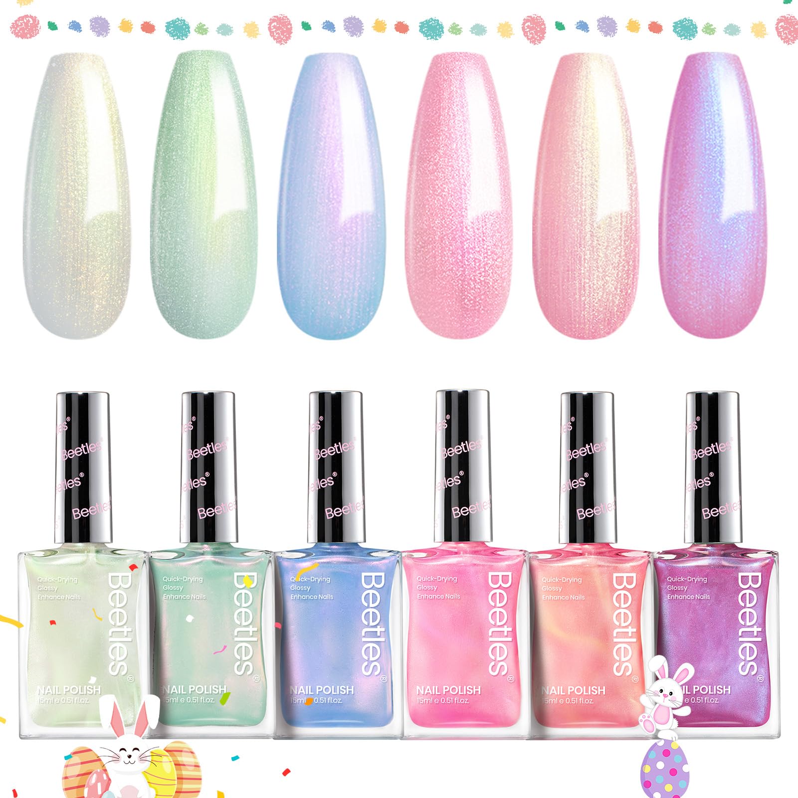 Beetles Pearl Nail Polish Set Mermaid Glow, 6 Colors Shimmer Pearl Pink Purple 15ml Quick Dry Nail Polish Long Lasting DIY Manicure Gift for Girls Women Nail Strengthener Polish