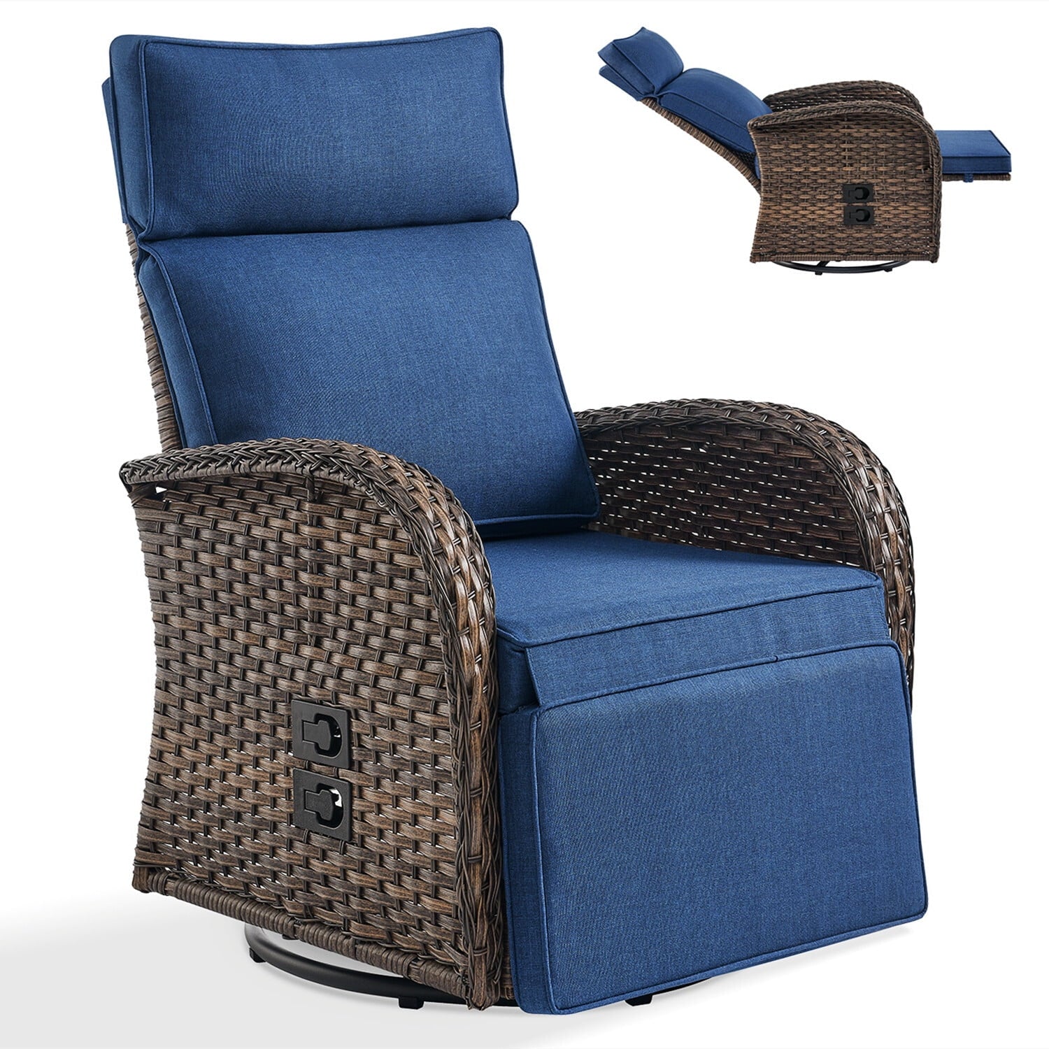 Bellefurn Outdoor Swivel Recliner Chairs,Patio Wicker Recliner Chairs Outdoor Lounge Chairs with Thickness Cushions,Adjustable Angle,Reclining Lounge Chair for Outdoor,Fire Pit,Pool,Garden