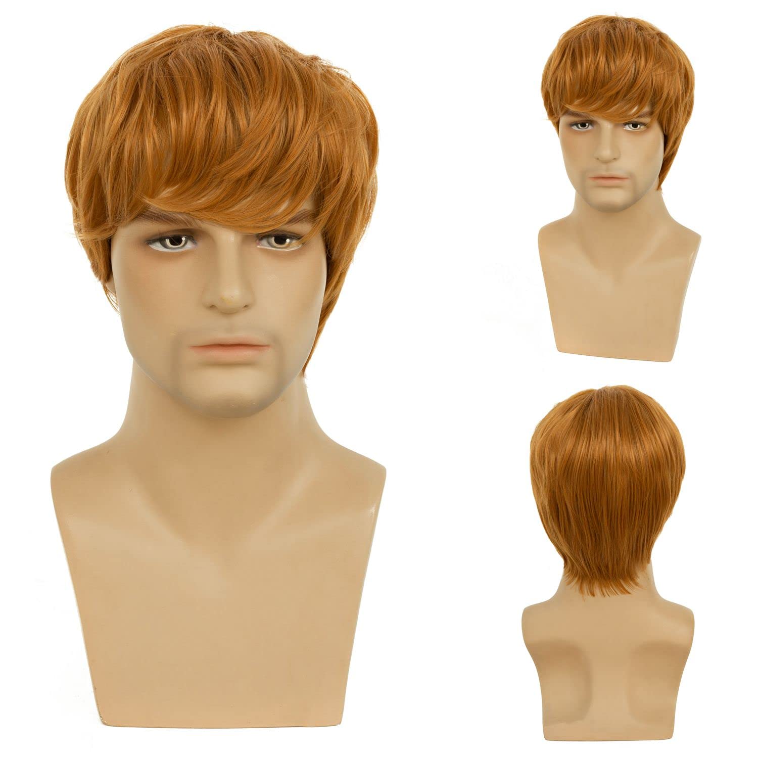 Beweig Mens Wig Short Orange Costume Hair Replacement Synthetic Cosplay Halloween Hair Wigs