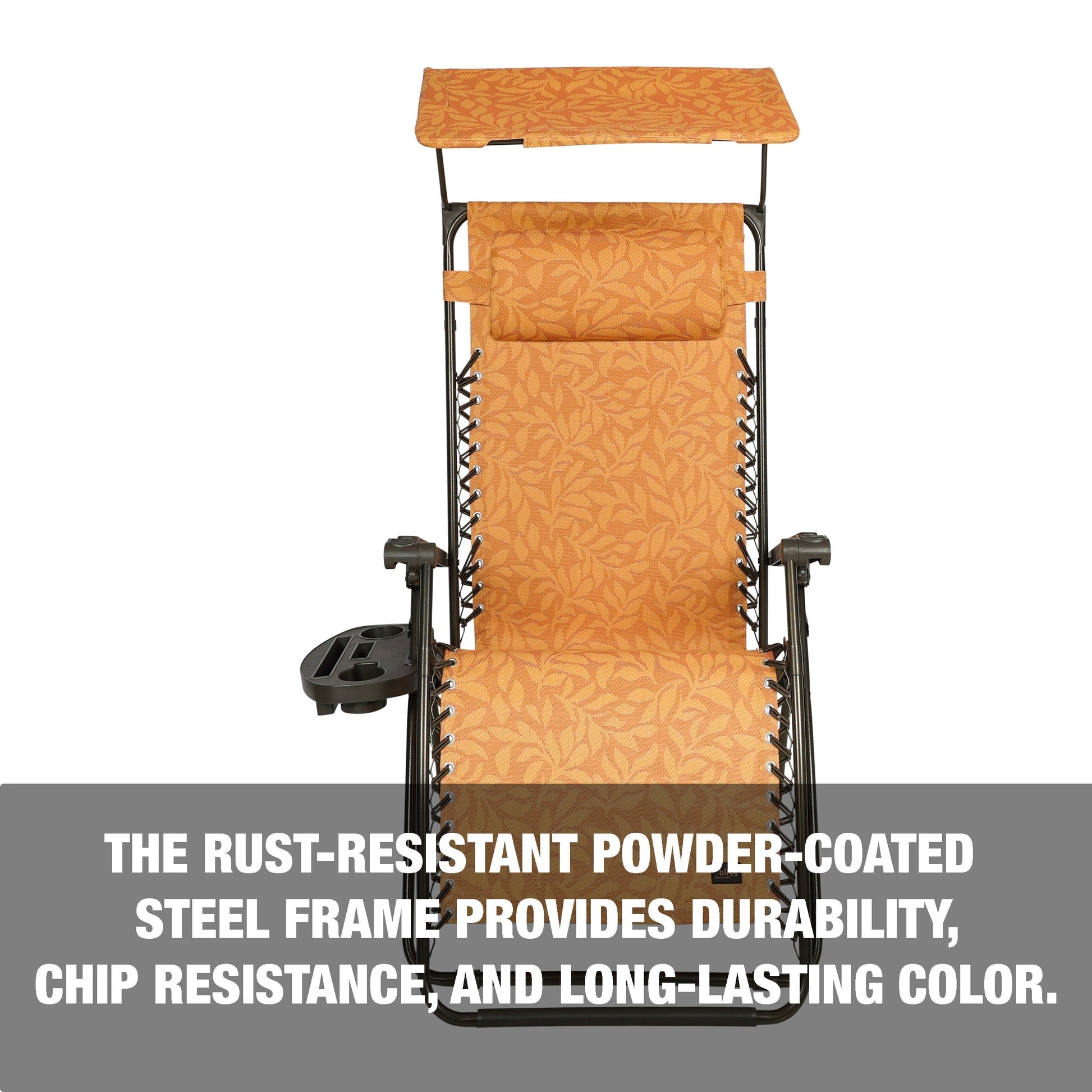 Bliss Hammocks 32 in. Wide Gravity Free Chair W/ Canopy, Drink Tray, & Pillow, Weather & Rust Resistant, 360 Lb. Capacity - Amber Leaf