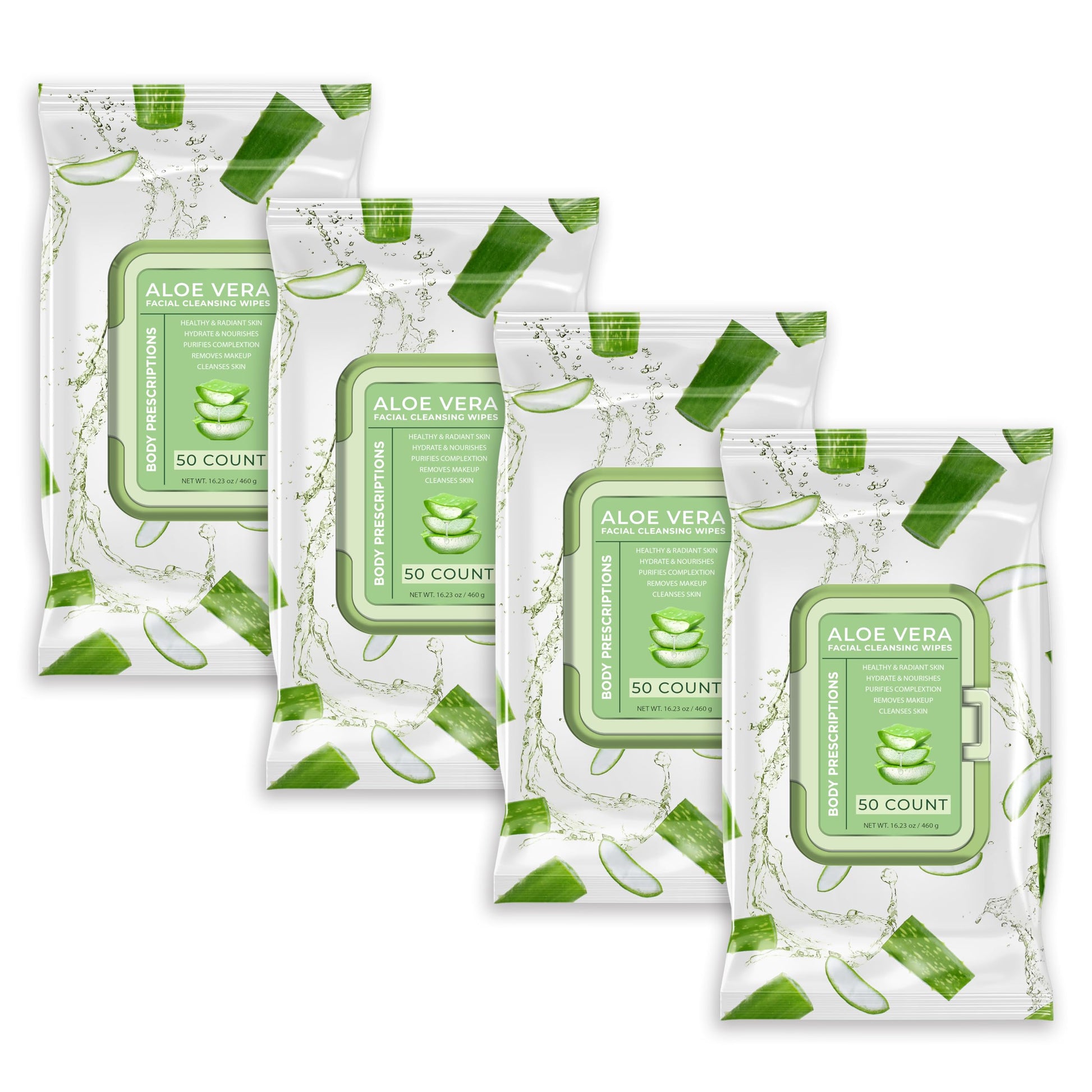 Body Prescription Makeup Cleansing Wipes - Gentle and Effective Face Wipes, 50 Count (Pack of 4), Aloe Vera