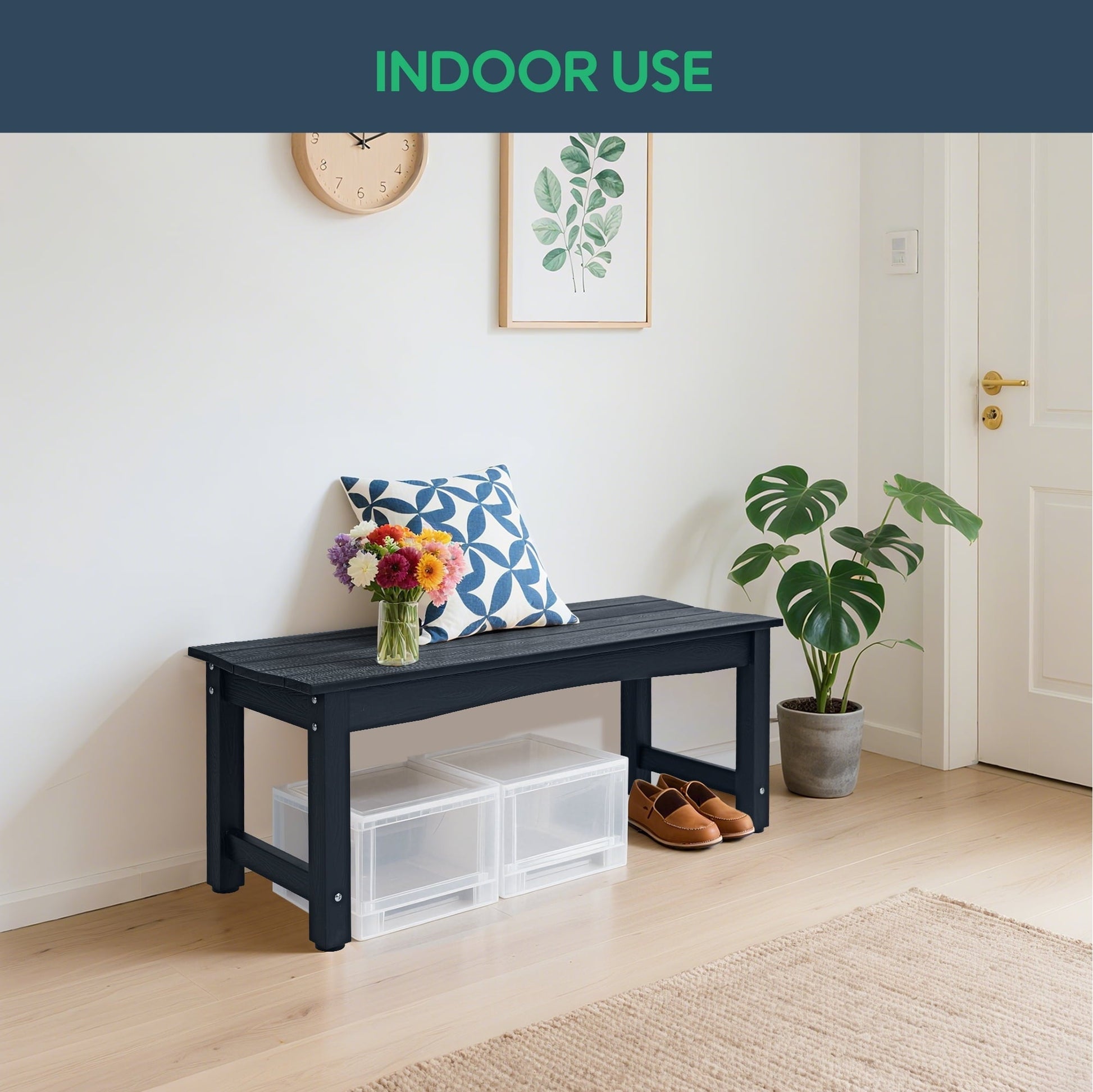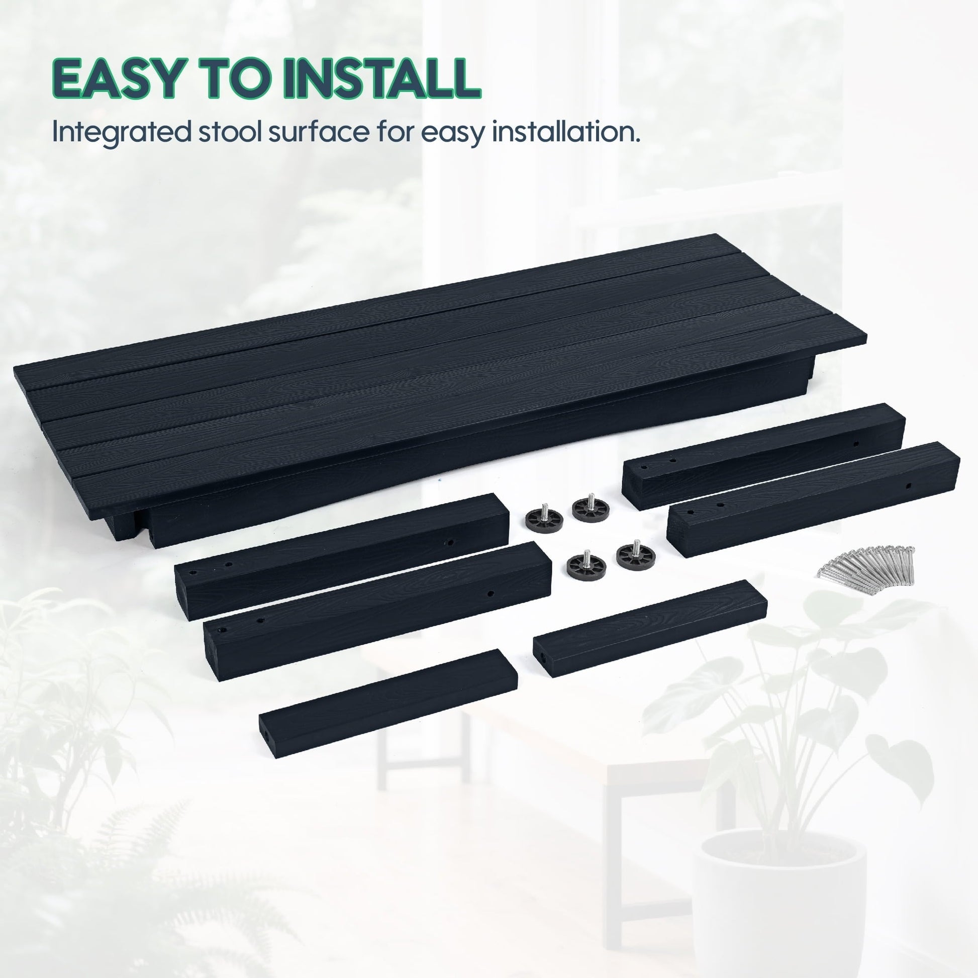 With a slightly curved seat and a smooth wood-like finish, this backless garden bench offers both comfort and style. Non-slip rubber foot pads provide stability on concrete, grass, or decking. The bench assembles in minutes with just seven components and stainless screws—tools included.