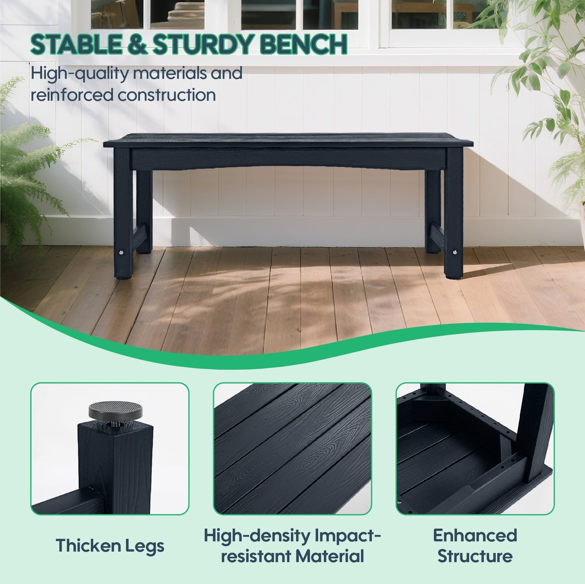 The Bstjewey Outdoor 2-Person Patio Bench is crafted from all-weather HIPS poly lumber, providing superior resistance to fading, cracking, and rotting. Designed for year-round outdoor use, this bench mimics the rich texture of real teak wood with 98% visual accuracy—without the maintenance. Its robust frame includes four reinforced crossbars and thick load-bearing slats, supporting up to 800 lbs with minimal deflection. Stainless steel hardware ensures long-lasting durability in any climate.
