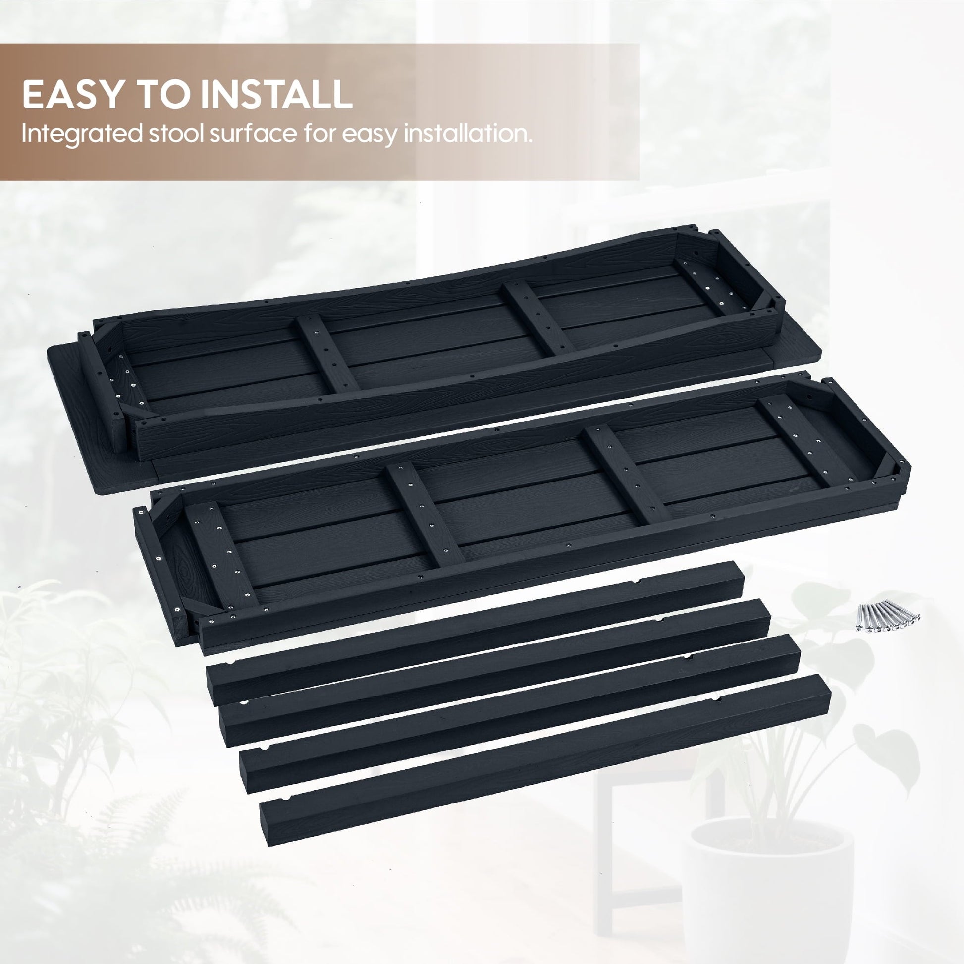 Bstjewey Outdoor 48" 2-Tier Console Table, Weatherproof HIPS, Black