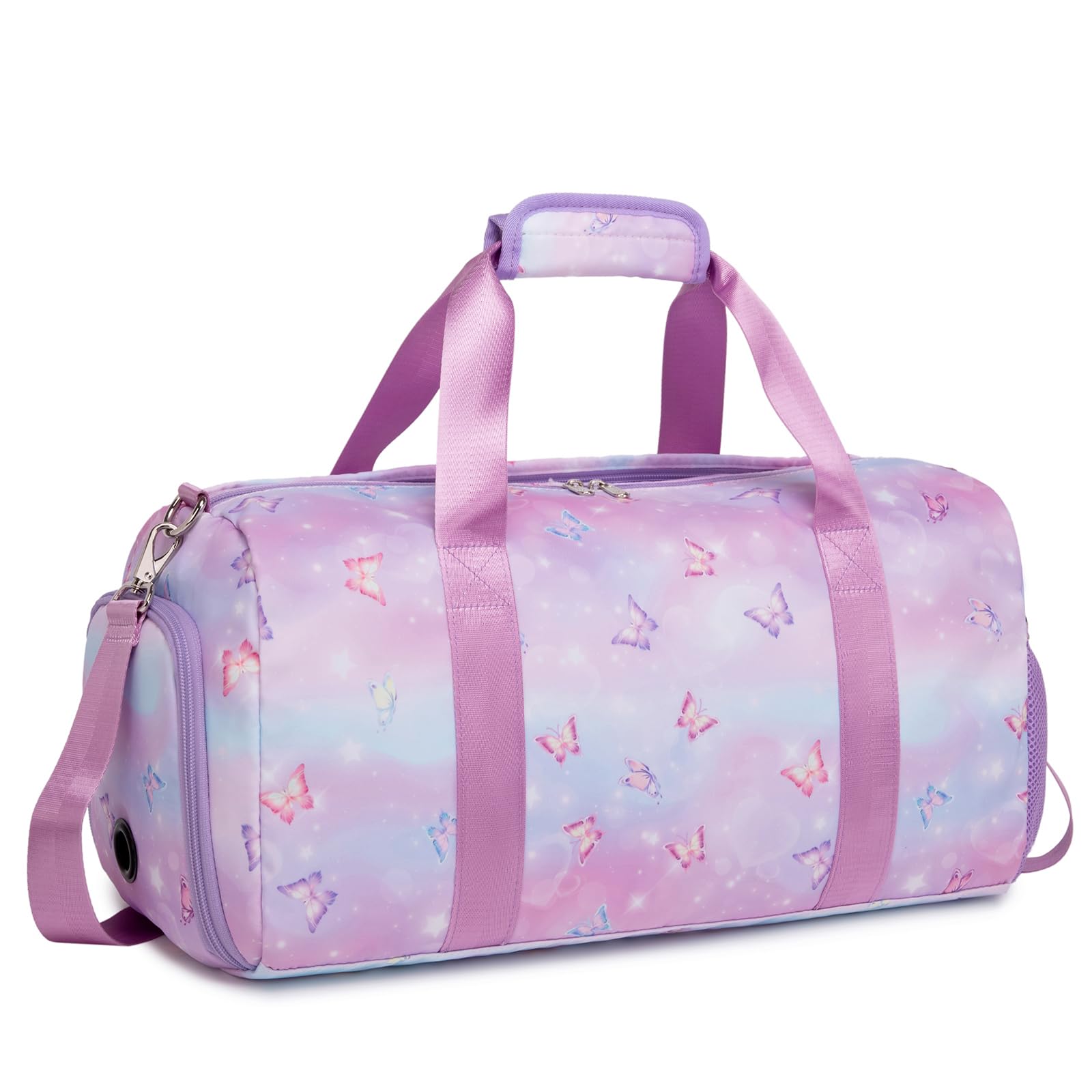 Butterfly Dance Bag for Girls,Gym Travel Duffle Bag for Girls -Dance Gymnastics Sports Dance Bag with Shoe Compartment