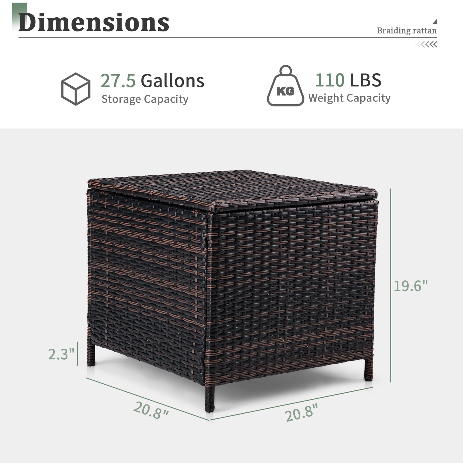 Enhance your outdoor space with the Buytoshop Outdoor PE Wicker Side Table with Storage. This versatile piece serves as both a stylish side table and a convenient storage container, offering a practical solution for organizing furniture covers, toys, gardening tools, and more. It features an all-weather handwoven PE rattan design that adds a touch of elegance to any patio or garden. The sturdy steel frame ensures durability and stability, while the 27-gallon storage capacity provides ample space for your belongings.