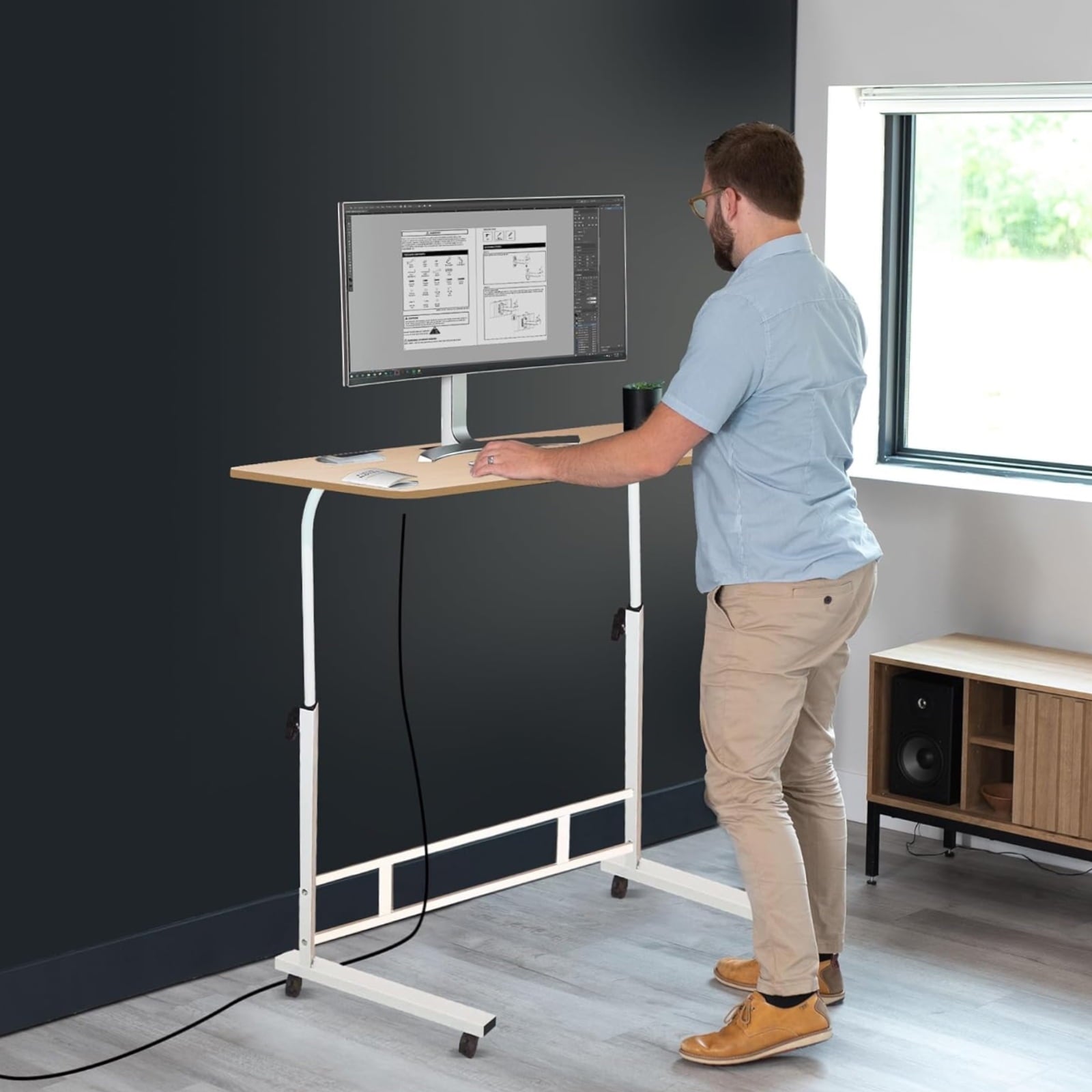 C-Shaped End Table with Wheels,Adjustable Height,Compact Rolling Side Table for Small Spaces, Multi-Functional Sofa/Laptop/Bedside Table, Mobile Convenience Table, Modern Aesthetic, Sturdy Construc