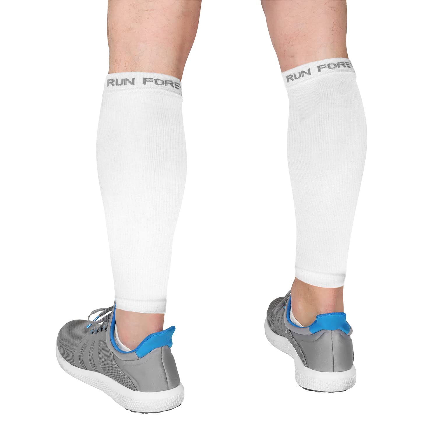 Details: Size Chart Important! Please measure the thickest part of your calf (circumference) to determine the proper size compression sleeve for you. Calf Size Measurements Small: 10'-13' Medium: 12' - 15' Large: 14'-17' XL: 16' - 19' ANOTHER RUN, AND YET AGAIN, ANOTHER CHARLIE HORSE… It seems that no matter what you do, or how many bananas you eat, leg cramps are just a part of life. What if there was a REAL way to help improve circulation while keeping those pesky cramps at bay? WELL, THERE IS! By using Run Forever Sports well-designed Calf Compression Sleeve you can finally have a product that encourages the relief and performance you desire! With a superior fit, and long- lasting materials, we are the premier choice in compression legwear. THE BETTER FIT While some sleeves can be too tight no matter what size you get, leaving you with that unwanted top-of-calf “muffin top”, ours have been meticulously made to meet the needs of anyone up to heights and sizes of 6’3” It’s quality you can trust, with a guarantee that can’t be beat! PARTNERS We know it’s nice to be able to try before you commit to anything, and with our lifetime refund/replace guarantee, you’re getting just that! EXPERIENCE IMPROVED PERFORMANCE AND RELIEF FROM UNWANTED LEG PAIN, AND CLICK THE “ADD TO CART” BUTTON NOW!!