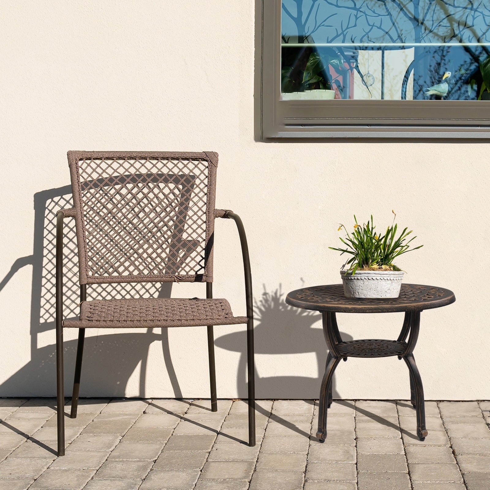 Cast Aluminum Outdoor Round Anti-Rust Side Table - Patio Bistro End Table for Indoor/Outdoor Garden Porch Balcony, Antique Bronze